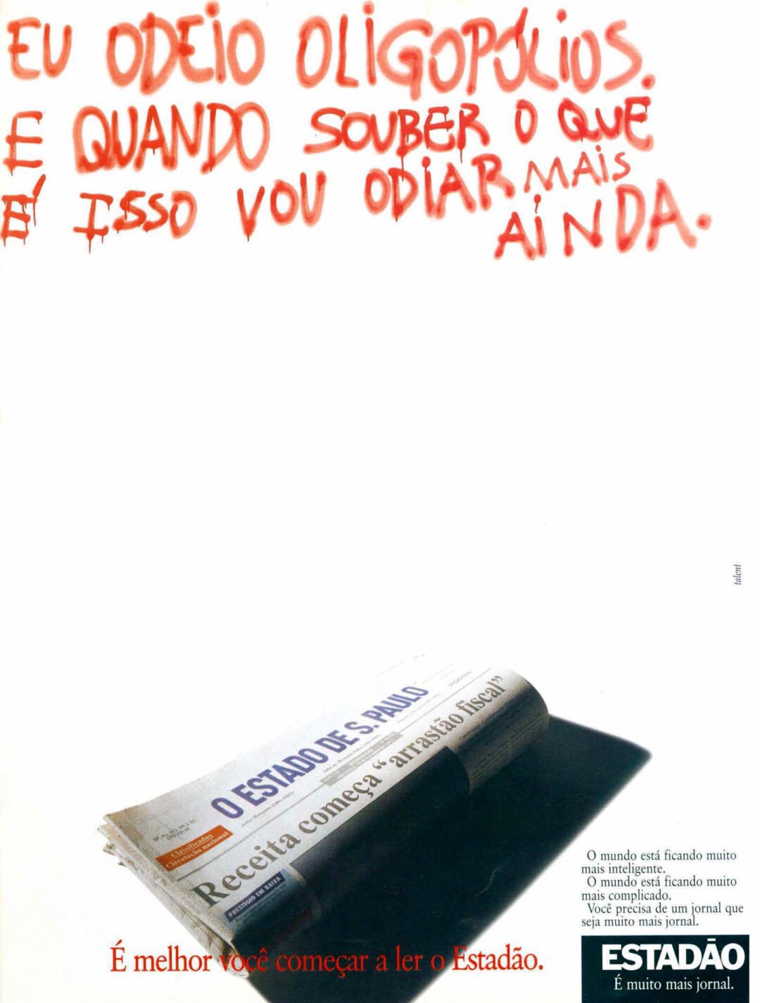 Categorias Impressos | Títulos Oligopólios para o Estadão Autor do post Por Tiago Moraes Data de publicação 12/01/2026 Nenhum comentário em Oligopólios para o Estadão Agência: TalentRedator: Eugênio Mohallem Quer ver mais? Navegue por categorias ou acesse o arquivo completo do blog. ← Frases de Bill Bernbach → Propaganda é muito cara para ser chata Deixe um comentário Cancelar respostaO seu endereço de e-mail não será publicado. Campos obrigatórios são marcados com *Comentário * Nome * E-mail * Site Salvar meus dados neste navegador para a próxima vez que eu comentar.